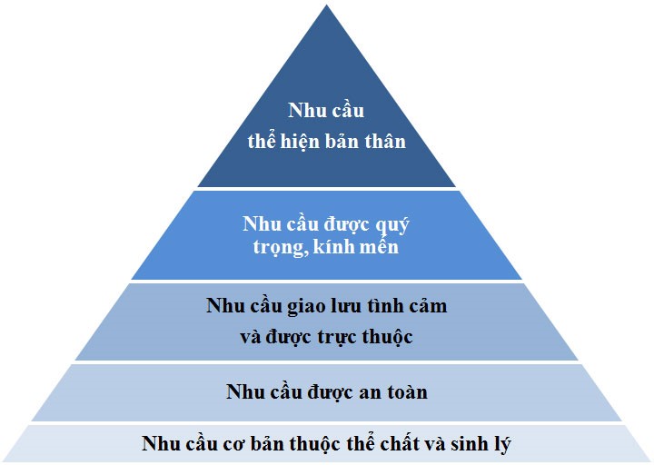 Theo quan điểm của nhà tâm lý học A. Maslow, con người có 05 loại nhu cầu cơ bản được sắp xếp theo bậc thang từ thấp tới cao.