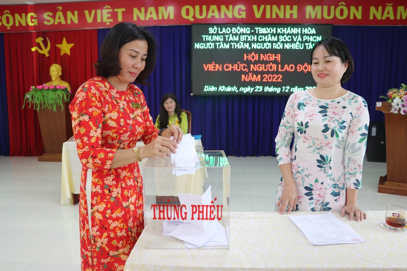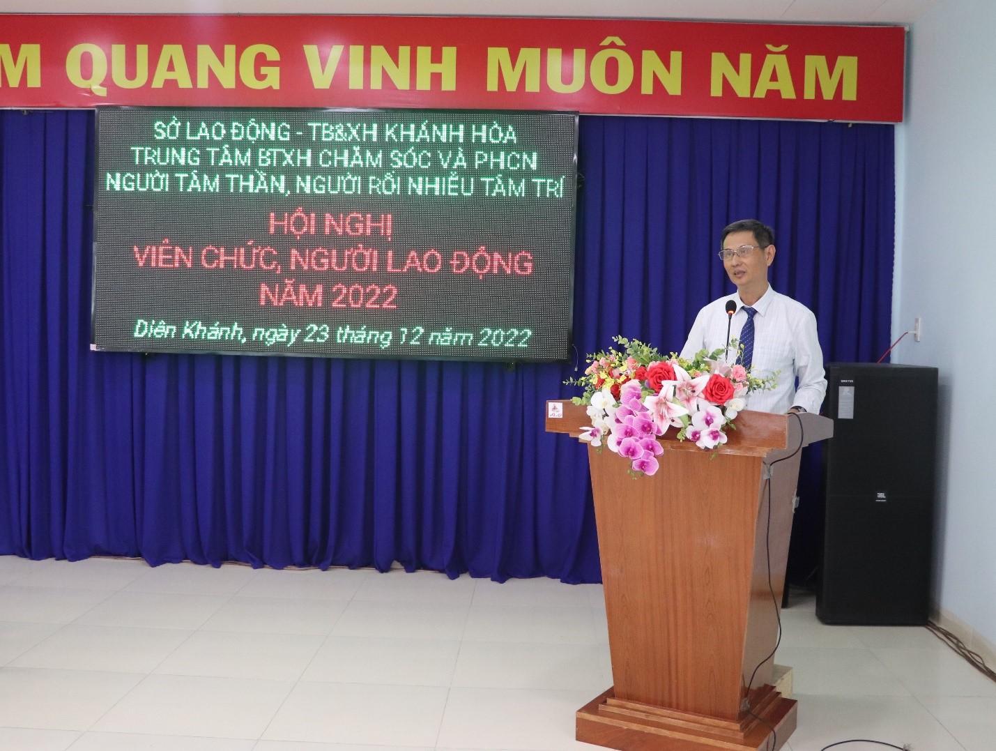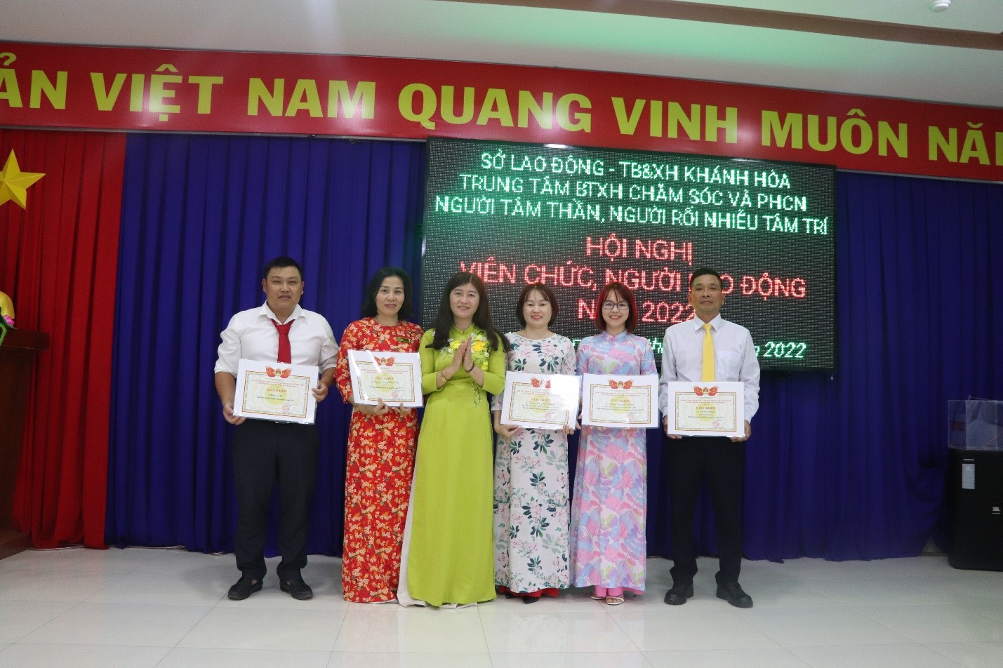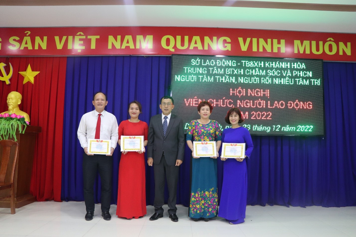 Chiều ngày 23/12/2022, Trung tâm Bảo trợ xã hội Chăm sóc và Phục hồi chức năng người tâm thần, người rối nhiễu tâm trí tổ chức Hội nghị viên chức, người lao động năm 2022 để đánh giá kết quả thực hiện công tác năm 2022, đồng thời đề ra phương hướng, giải pháp thực hiện nhiệm vụ năm 2023. Tham dự Hội nghị có ông Phạm Thái Đài – Thường vụ Đảng ủy – Phó Giám đốc Sở, Chủ tịch công đoàn cơ sở và toàn thể viên chức, người lao động của Trung tâm.
